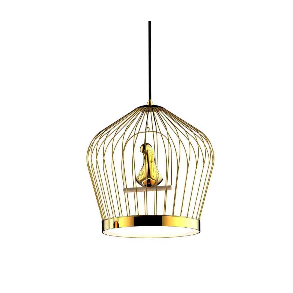 konstrukcja z metalowego pręta malowanego na czarno lub złoconego w wersji total gold. Oprawa LED umieszczona na podstawie klatki, osłonięta podwójną osłoną z poliwęglanu, która z jednej strony oświetla pomieszczenie, a z drugiej wnętrze klatki.