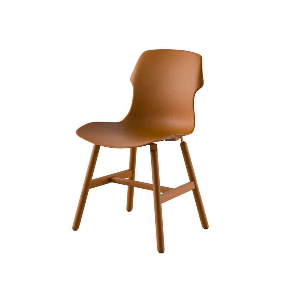 Malowana metalowa konstrukcja pasuje do koloru siedziska i uzupełnia kolekcję Stereo i Stereo Wood.