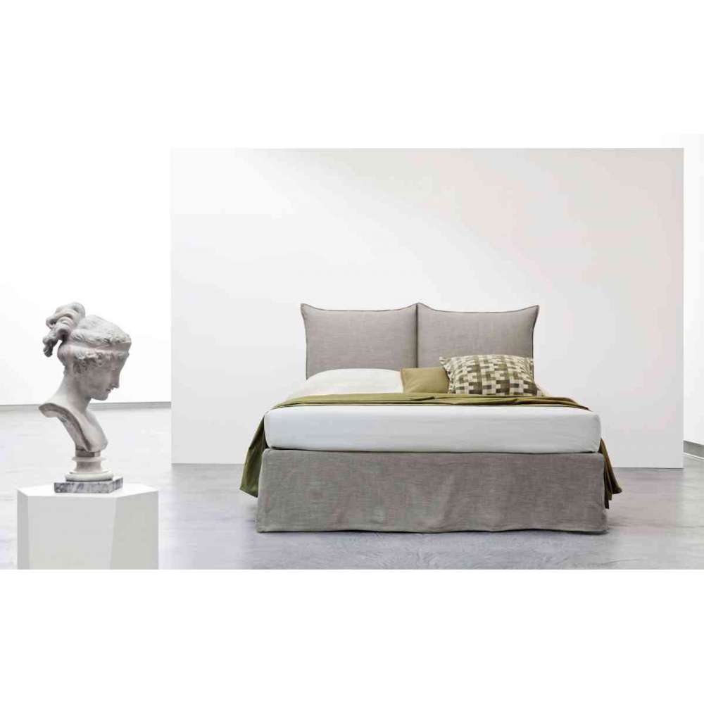 Łóżko Milos to wyściełane łóżko pokryte skórą, tkaniną lub ekoskórą. Pokrycie można zdejmować i prać, może być wykonane z tkaniny wybranej z próbek Orizzonti/Horm lub nawet z tkaniny dostarczonej przez klienta.
