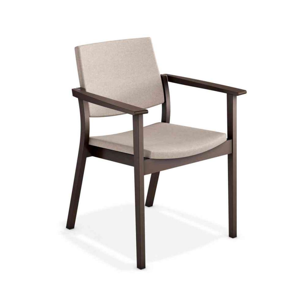 Każdy osiedlając się w Sinie czuje się jak w domu. Sina to krzesło, które łączy w sobie wygodę i stabilność, a jego ręcznie wykonana obudowa nadaje mu ponadczasowy i przytulny wygląd. Sina jest łatwa w obsłudze i bardzo łatwa do układania w stosy, dzięki czemu wyjątkowo nadaje się do środowisk opieki. Czy to w szpitalu, czy w domu opieki: Sina zawsze zapewni najlepsze miejsce w domu. Sina oferuje wysoki komfort siedzenia dzięki wysokiej jakości tapicerce i elastycznemu oparciu. Pięknie wykończona, solidna drewniana rama Siny z szerokimi podłokietnikami zapewnia optymalne podparcie. Ponadto skośne tylne nogi zapobiegają przechylaniu się krzesła do tyłu – mile widziana cecha dla każdego, kto potrzebuje dodatkowego wsparcia!