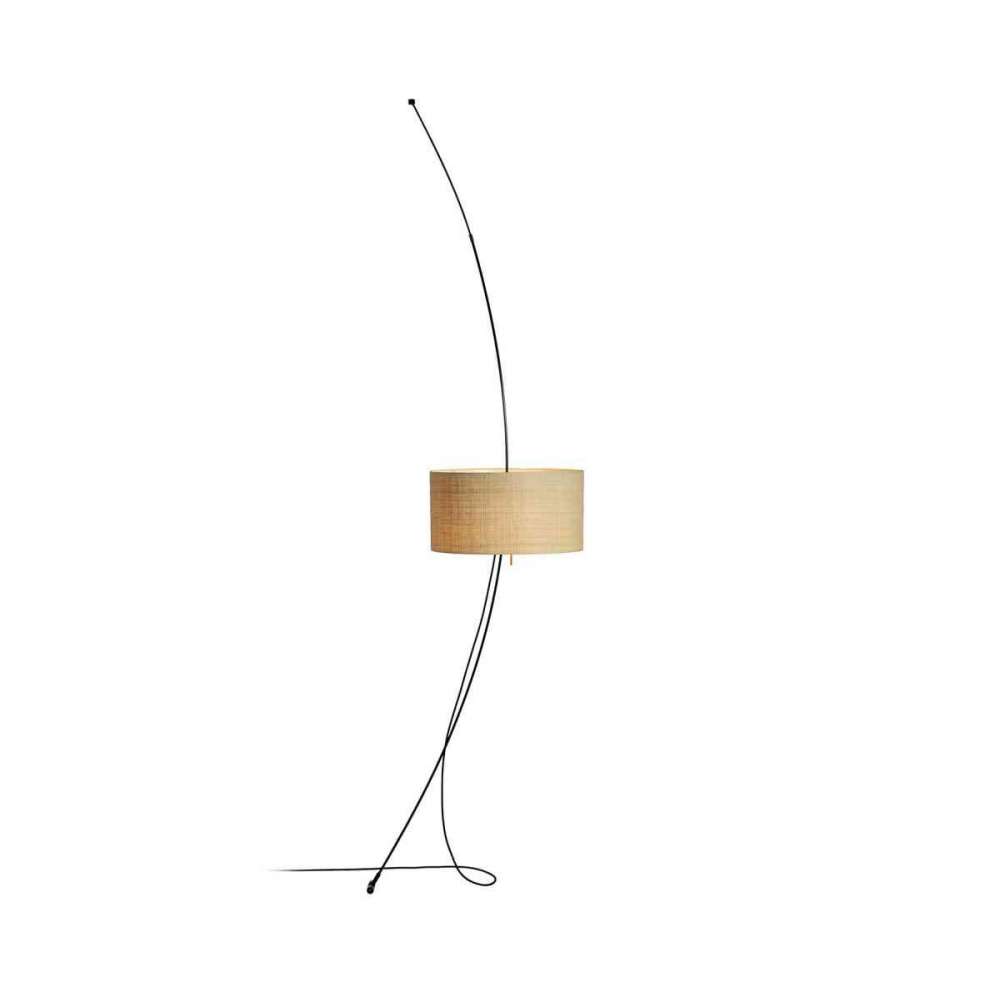 wys.: 240 - 350 cm / szer.: Ø 45 cm / Czarna struktura / Trzonek: elastyczne czarne włókno / Regulacja wysokości / Włącznik na oprawce / Klosz z włókna naturalnego Bez żarówki 2xE27 LED