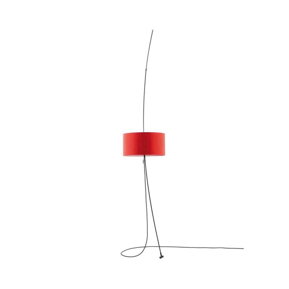 wys.: 240 - 350 cm / szer.: Ø 45 cm / Czarna struktura / Trzonek: elastyczne czarne włókno / Regulacja wysokości / Włącznik na oprawce / Czerwony klosz