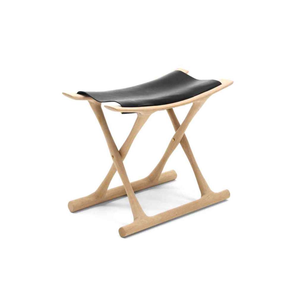 Ole Wanscher czerpał inspirację ze starożytnego Egiptu i Teb, projektując egipskie krzesło składane. To składane krzesło, które emanuje godnością i mocą, a konstrukcja i wykończenie są wyjątkowe. Siedzisko wykonane jest ze skóry siodłowej. W pozycji złożonej siedzisko składa się w fotel.