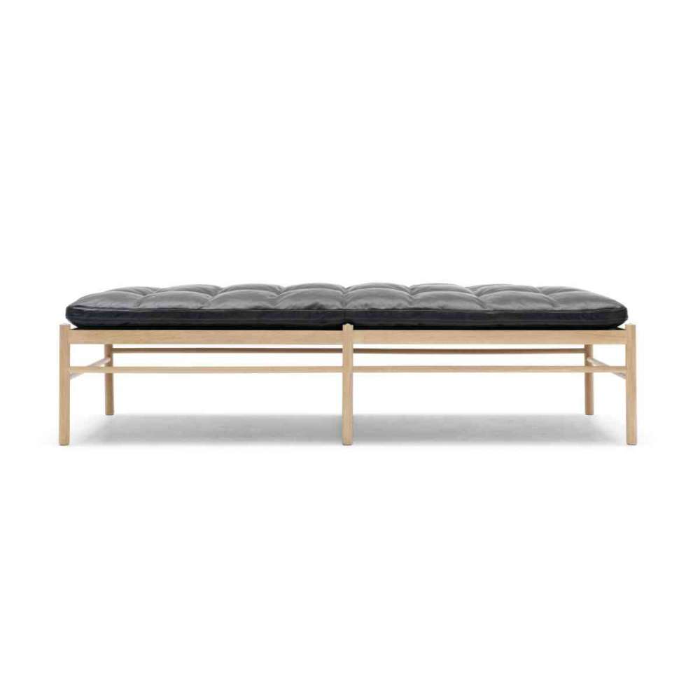 Wiele projektów Ole Wanschera stało się obiektami kolekcjonerskimi ze względu na ich ponadczasowość i piękne wykończenie. Jego leżanka OW150 nie jest wyjątkiem. Materac niemal unosi się na prostych nogach wykończonych drobnymi detalami. Delikatna, ale mocna rama podtrzymuje bawełnianą taśmę podtrzymującą materac.