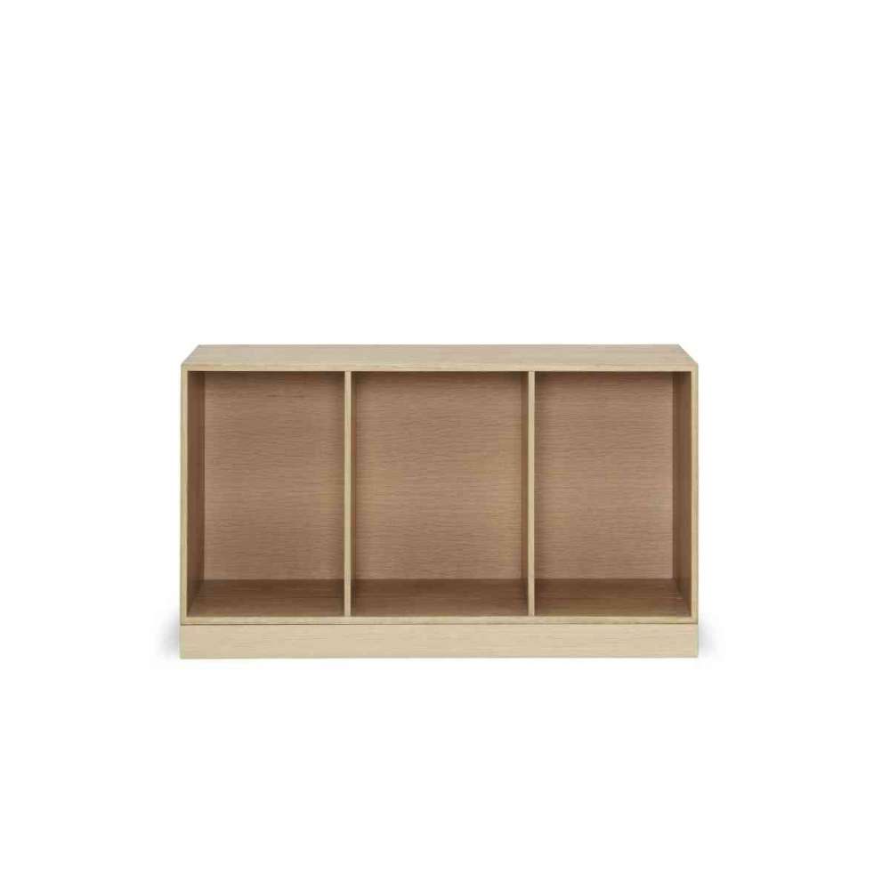 Dwustronny regał 1/2 o wymiarach 76 cm x 38 cm x 27,5 cm (D) z trzema sekcjami. Można go używać zarówno w poziomie, jak iw pionie. Regały te dostępne są również z głębokością 36 cm (MK74182). Regał można powiesić na ścianie lub postawić na cokole 1/2 I lub II.