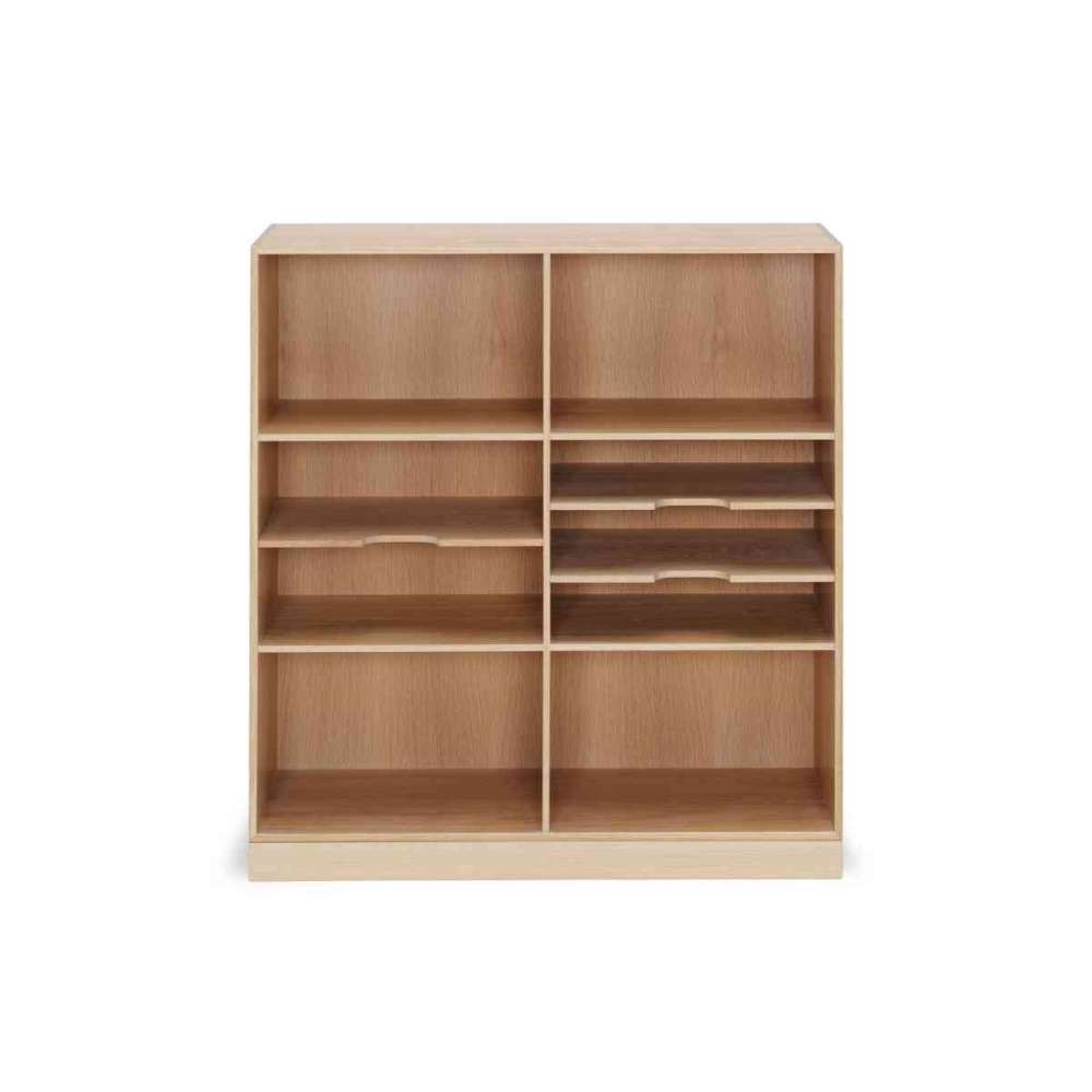 Kiedy Mogens Koch rysował pierwsze linie swojego systemu regałów w 1928 roku, stworzył kształt, który był wielokrotnie kopiowany na całym świecie. Może po prostu nie da się tego zrobić lepiej? System z kwadratowymi regałami oferuje niemal nieskończoną elastyczność dzięki niezliczonym elementom. Podstawowy moduł, regał z sześcioma przegrodami, które można obracać w zależności od wielkości książek, sam w sobie jest genialną konstrukcją. Regał Mogens Koch jest produkowany w firmie Rud nieprzerwanie od ponad 80 lat. Rasmussena. Cechą charakterystyczną zarówno projektu, jak i wykonania są piękne połączenia na jaskółczy ogon i na wręgi, które zapewniają wytrzymałość i stabilność każdego modułu.