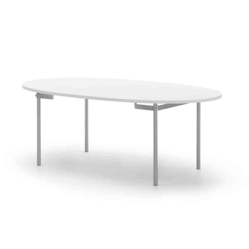Kolejny piękny przykład wizjonerskich projektów Wegnera. Eliptyczny blat jest dostępny z litego drewna lub laminatu z nogami ze stali nierdzewnej. Stół z wieloma opcjami, które można dostosować do własnych potrzeb, co oznacza, że nie jest to tylko codzienna radość, ale stół doskonale nadający się do rozrywki. Za oddzielną dopłatą do czterech dodatkowych liści.