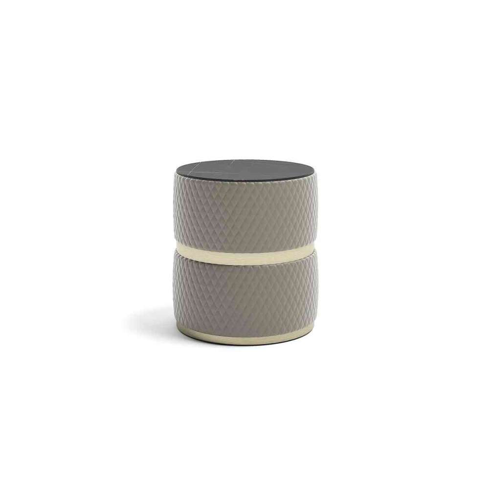Drewniana rama. Wypełnienie z nieodkształcalnej pianki poliuretanowej o różnej gęstości. Blat drewniany lub marmurowy. Podstawa i wkładka wykończone metalem.