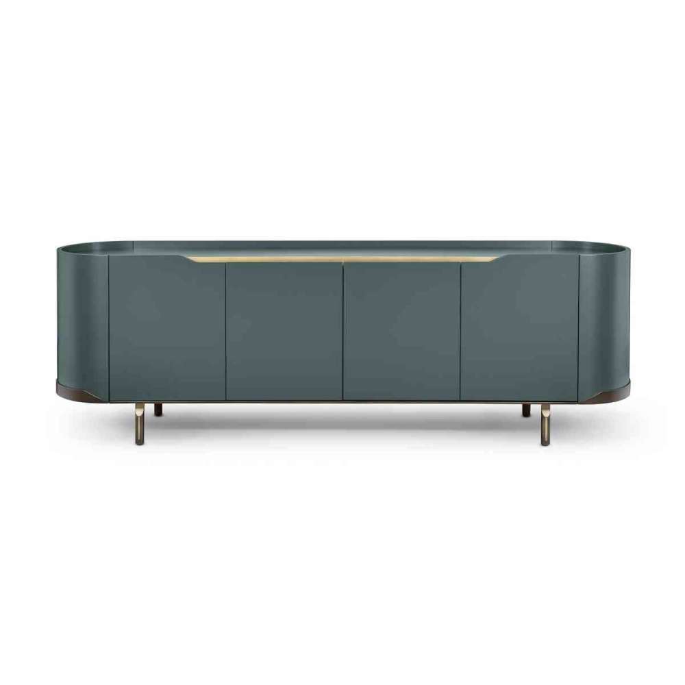 Kredens Shanghai z drewna z 2 drzwiami. Struktura jest wykonana z drewna uszlachetnionego czarnym jesionem lub orzechem włoskim z pionowymi wspornikami z kutego i kutego metalu, które upiększają linie. Wnętrze jest podzielone kształtową szklaną półką i dwiema szufladami i jest lakierowane w kontrastowym kolorze, dzięki czemu schowek staje się wyrafinowaną ekspozycją o zwiększonej atrakcyjności wizualnej po otwarciu drzwi. Dwie wewnętrzne szuflady mają zintegrowany metalowy uchwyt, który tworzy idealne koło, podkreślając dopracowanie każdego detalu. Jednostka o poprzecznym i ponadczasowym designie, która może wyróżniać się w każdym otoczeniu, od salonu po strefę wejściową.