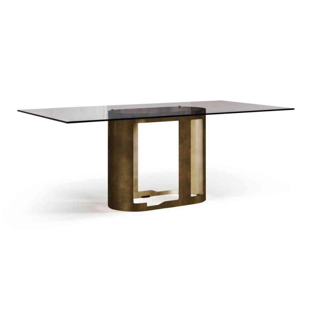 Nowoczesny stół Oasi wykonany ze szkła z owalnym blatem i metalową podstawą. Wycięta laserowo podstawa z blachy stalowej jest frezowana i wyginana, tworząc trójwymiarowy wzór