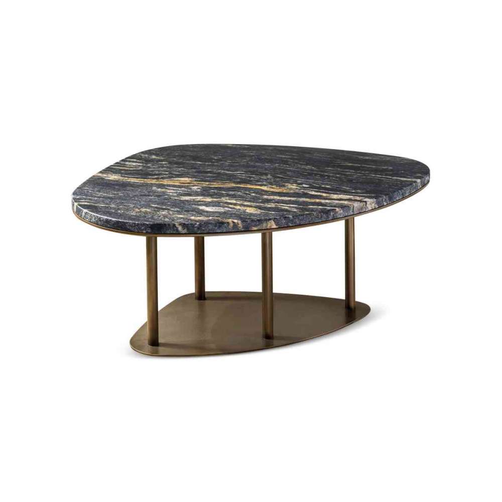 Stoliki kawowe Ninfea. Metalowe konstrukcje podtrzymują i podnoszą blaty, które są niepowtarzalne dzięki zastosowaniu szlachetnych materiałów. Metal, szary trawertyn, czarny jesion, marmur, kamień i liczne wykończenia zapewniają za każdym razem wyjątkowe i szczególne wrażenie. Dokładnie tak, jak roślina, od której stoły otrzymały nazwę, tryptyk Ninfea zapewnia własną żywą kompozycję. Forma stworzona przez trzy elementy, z blatami, które niemal unoszą się na idealnej tafli wody, sprawia, że każdy stół, nawet pojedynczo, może wyróżnić się w każdym ustawieniu. Obok sofy, obok innego stolika kawowego lub na środku pokoju zawsze przyciągnie uwagę.