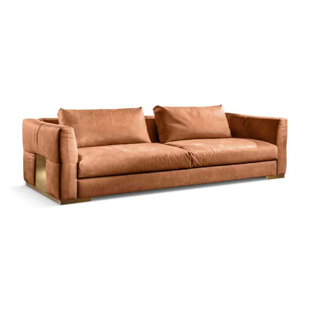 Sofa liniowa Montecarlo z 2 lub 3 siedzeniami ze skóry, tkaniny lub ekoskóry. Konstrukcja wykonana z litego drewna bukowego i topolowego ze wstawkami ze sklejki, efekt sprężystości zapewniają elastyczne i nieodkształcające się pasy. Pokrycie struktury jest wykonane z ekspandowanego poliuretanu o różnej gęstości i bardzo elastycznej warstwy wierzchniej, wyściółka jest nieodkształcalna o różnych gęstościach i jest wykonana z piór i materiału syntetycznego. Wycinana laserowo brązowa metalowa płyta wydaje się trzymać sofę w ciepłym uścisku. Został zaprojektowany tak, aby pasował zarówno do nowoczesnych, jak i klasycznych wnętrz, a dzięki swojemu designowi i natychmiastowemu poczuciu komfortu niewątpliwie będzie się wyróżniał pod każdym kątem.