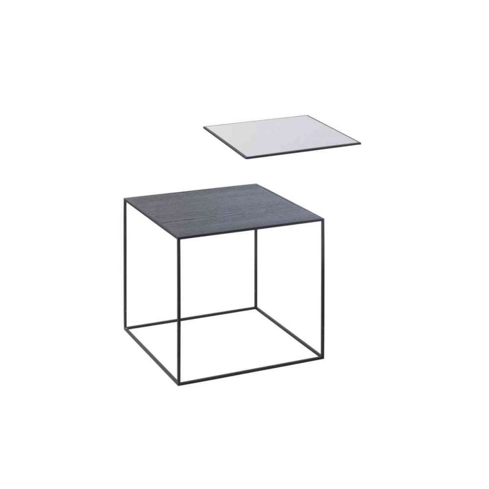 Preferowaną formą Mogensa Lassena był kwadratowy i surowy kształt sześcianu, i to on jest źródłem małego stolika Twin. Dzięki elastycznemu blatowi, który ma inną powierzchnię z każdej strony, Twin oferuje możliwość różnorodnej ekspresji projektowej na jednym i tym samym stole. Blat osadzony jest na ramie w kształcie sześcianu wykonanej z cienkich profili stalowych o grubości 6 mm, które nadają stolikowi bardzo lekki i surowy wygląd.