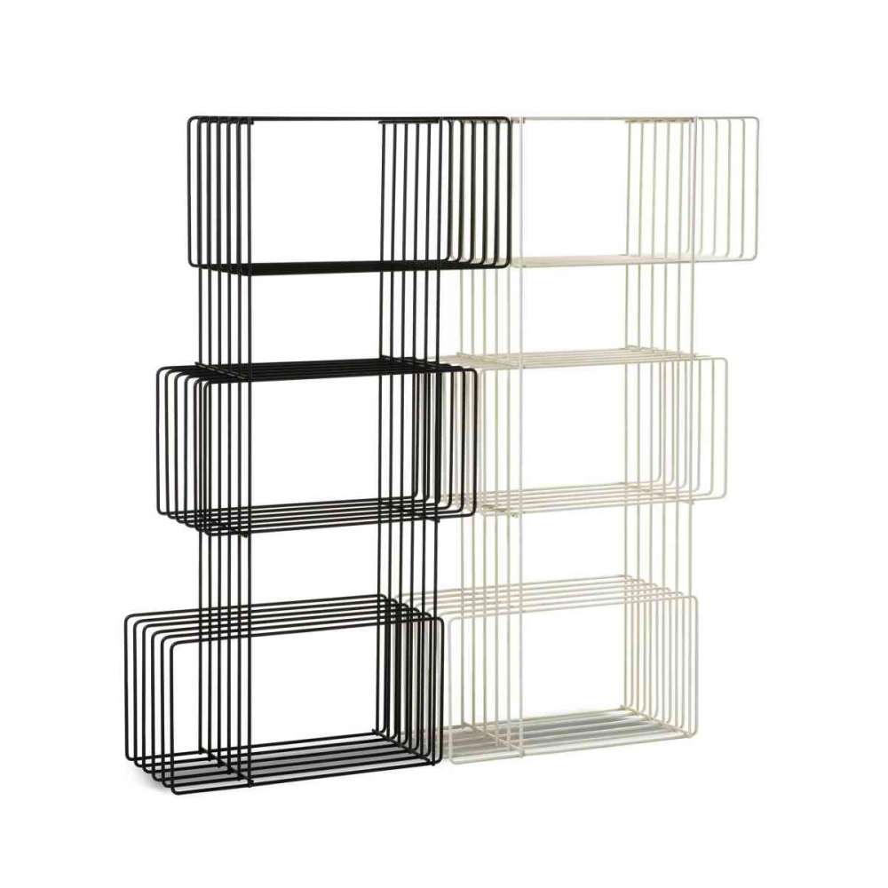 Odważna półka z rzeźbami, Bijoue oferuje zabawne, wyjątkowe i dekoracyjne półki. Niepowtarzalne kształty i geometria poziomych i pionowych linii wykazują komplementarną harmonię z metalową strukturą i organicznym cięciem. Liniowa narracja stworzona z poziomych i pionowych pasów wspiera nowoczesny design, jednocześnie podkreślając lekkość, tworząc niewidoczną przestrzeń ekspozycyjną w pomieszczeniu.