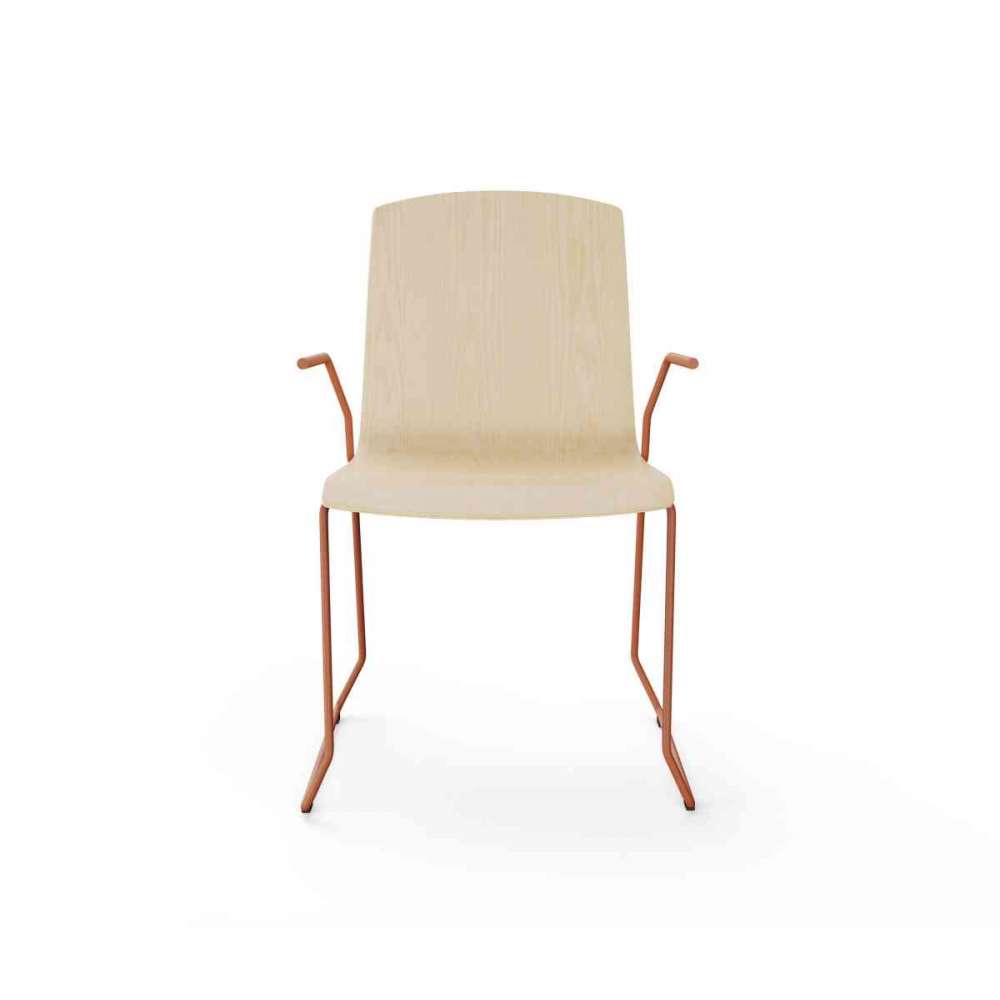 Drewniane detale znajdujące się na krawędziach podłokietników łączą się z metalem i eksponują wdzięczne połączenie. Seria Aristo, składająca się z dwóch różnych typów, opartych na saniach i czworonożnych, można ustawiać jeden na drugim. Dzięki układaniu w stosy wspierają efektywne i praktyczne wykorzystanie różnych przestrzeni podczas wydarzeń, takich jak wystawy czy warsztaty.