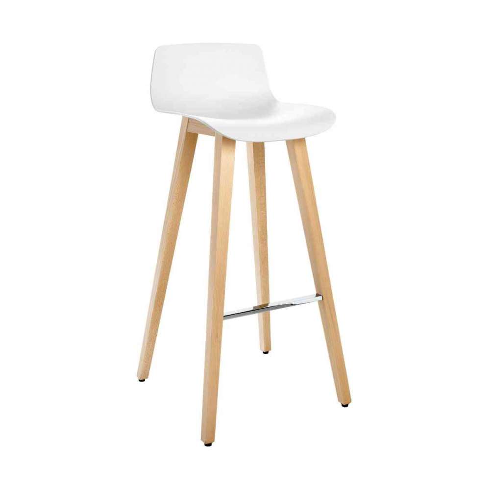 Żaden porządny bar nie może obejść się bez stołka barowego. Seria Due również zawiera taki klasyk. Z ramą z litego drewna bukowego i ergonomicznie ukształtowaną plastikową skorupą siedziska. Podnóżek o prostokątnym profilu z powodzeniem łączy się z ekscytującą mieszanką materiałów. Rama wybarwiona w kolorze wenge, ciemnoszarym, jasnym lub naturalnym. Plastikowe siedzisko dostępne w trzech dopasowanych kolorach: białym, kamiennym i lawowym.