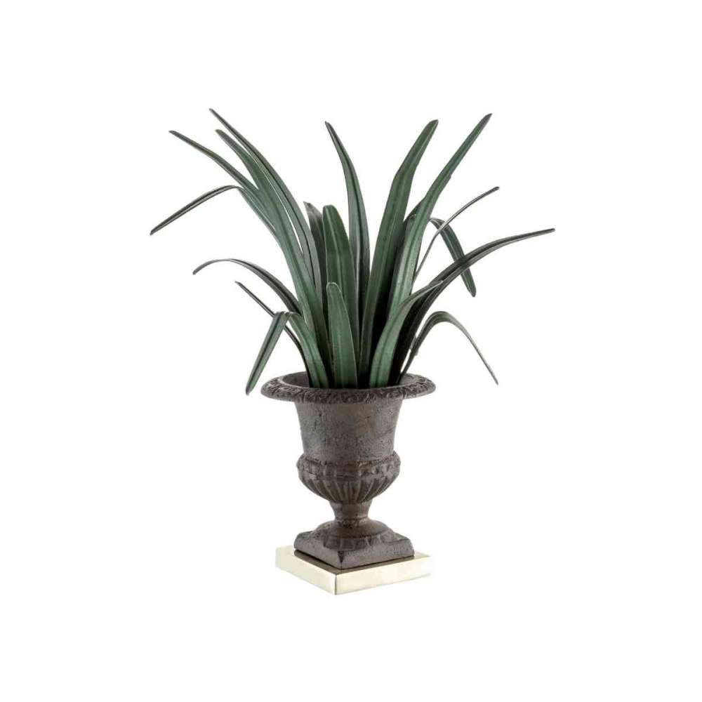 Uwagi dotyczące materiałów: Żeliwna ozdobna lampa stołowa w wazonie z małą kępką liści trawy cytrynowej z laserowo wycinanego żelaza i ręcznej dekoracji, kwadratowa mosiężna podstawa.