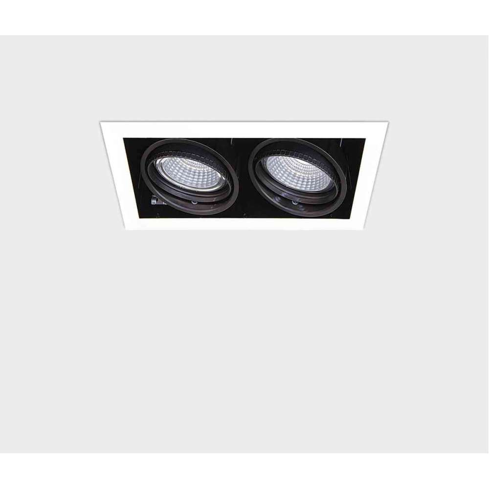 Obudowa: tłoczone aluminium/ tłoczona stal Klosz: przezroczysty poliwęglan Obrót: w pionie 30° / w poziomie 30° Układ sterujący: zdalny sterownik elektroniczny Odbłyśnik: okrągły aluminiowy diament (15°, 24°, 40°, 60°) Wat: maks. 2x42W UGR: ≤19 Od 11,6W do 28W Transmitancja: 86% IP: 20 IK: 07 ♦ Wymiana odbłyśnika bez narzędzi ♦ Wymiana diod LED bez narzędzi ♦ W przypadku szkła bezpiecznego klasa IK zmienia się na 02