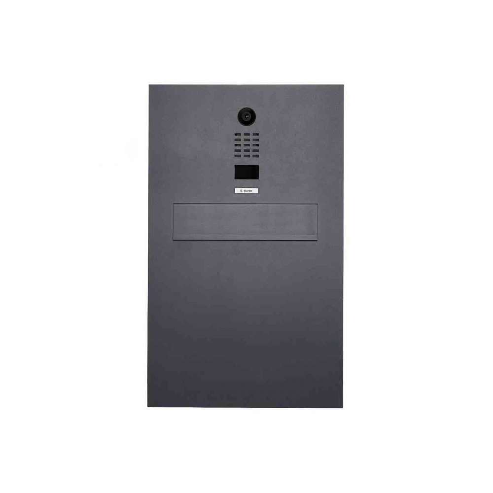 Briefkasten Manufaktur Designer | Edelstahl Zaunbriefkasten Designer BIG mit DoorBird Video- Sprechanlage - RAL nach Wahl