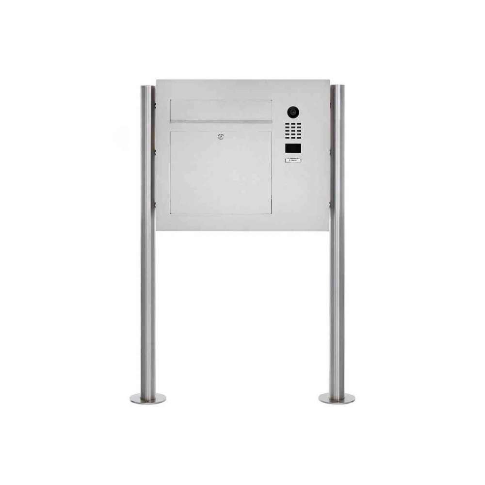 Briefkasten Manufaktur Designer | Edelstahl Standbriefkasten Designer Modell BIG ST-R mit DoorBird Video- Sprechanlage seitlich