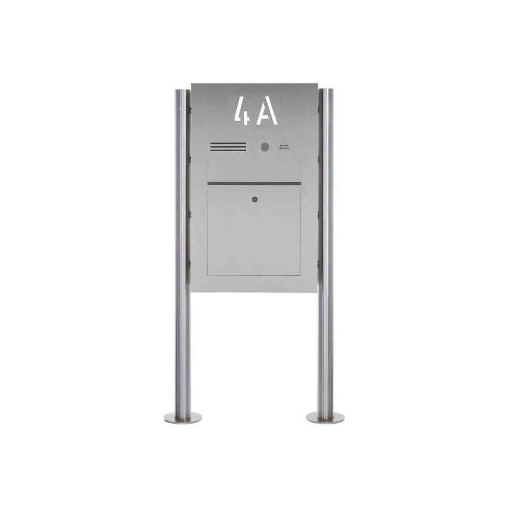 Briefkasten Manufaktur Designer | Edelstahl Standbriefkasten Designer BIG ST-R - Hausnummer hinterbeleuchtet - INDIVIDUELL