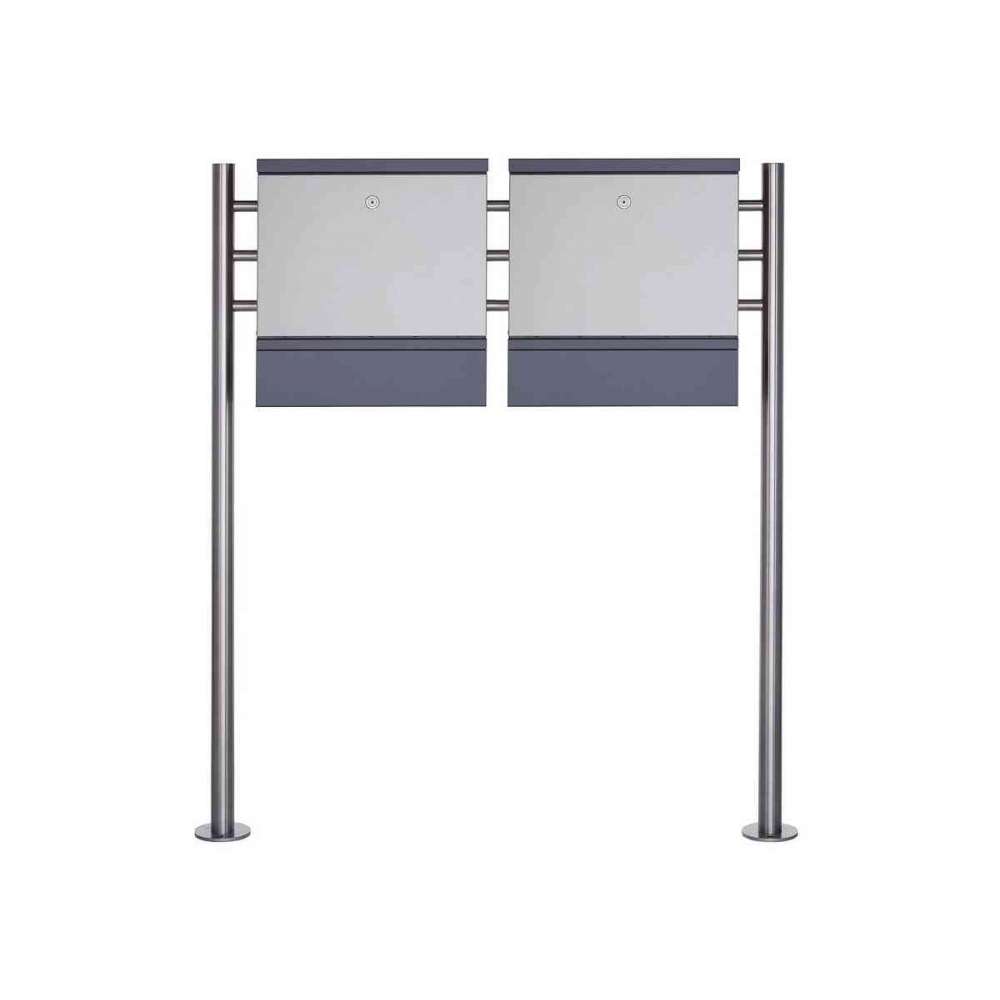 Briefkasten Manufaktur Brecht | 2er Design Edelstahl Standbriefkasten BRECHT ST-R mit Zeitungsfach - Edelstahl-RAL nach Wahl
