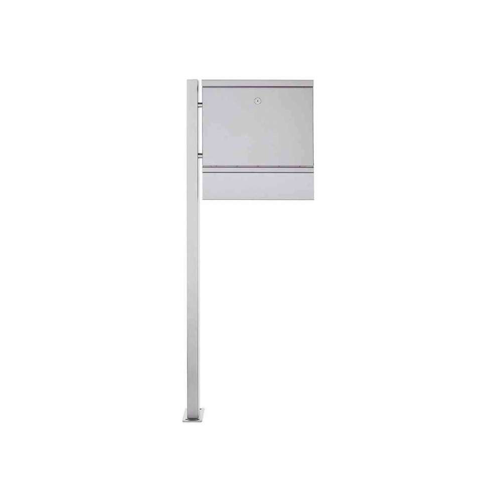 Briefkasten Manufaktur Brecht | 1 Säulen Design Standbriefkasten BRECHT ST-BP mit Zeitungsfach - Edelstahl V2A geschliffen Recht