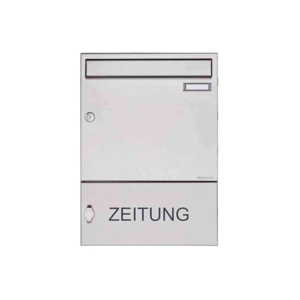 Briefkasten Manufaktur Basic | Edelstahl Aufputz Briefkasten Design BASIC 382A AP mit Zeitungsfach geschlossen 100mm Tiefe