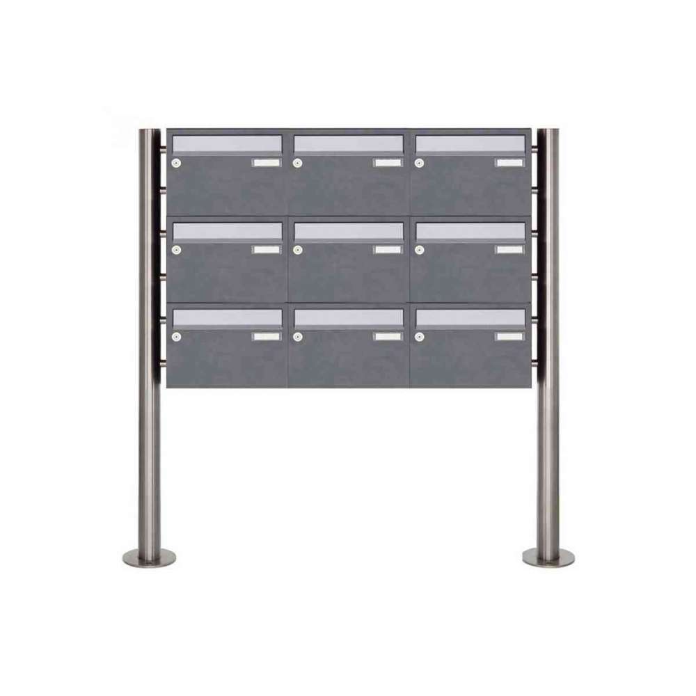 Briefkasten Manufaktur Basic | 9er Edelstahl Standbriefkasten Design BASIC Plus 385 220 X ST R - Edelstahl - RAL nach Wahl