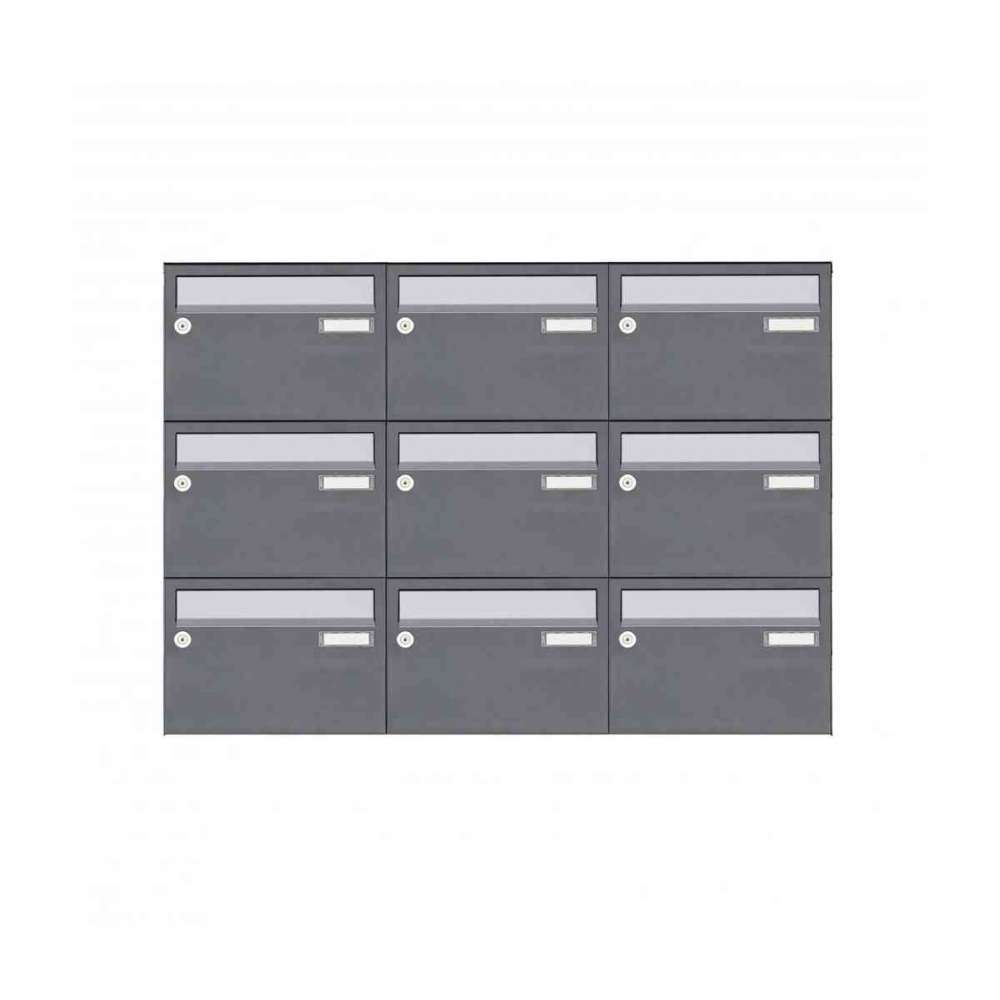 Briefkasten Manufaktur Basic | 9er Aufputz Briefkastenanlage Design BASIC Plus 385 XA 220 - Edelstahl - RAL nach Wahl