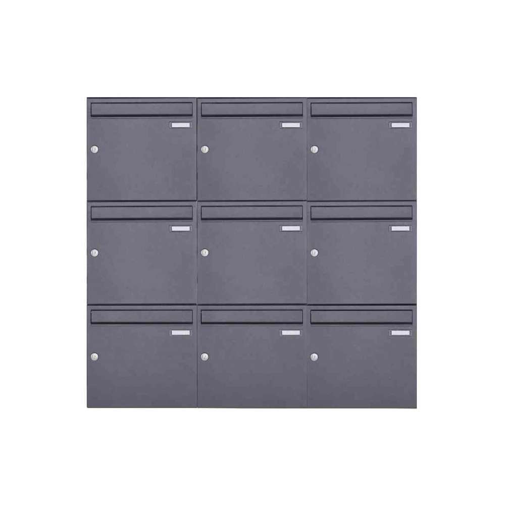 Briefkasten Manufaktur Basic | 9er 3x3 Aufputz Briefkasten Design BASIC 382A AP - DB703 eisenglimmer 100mm Tiefe