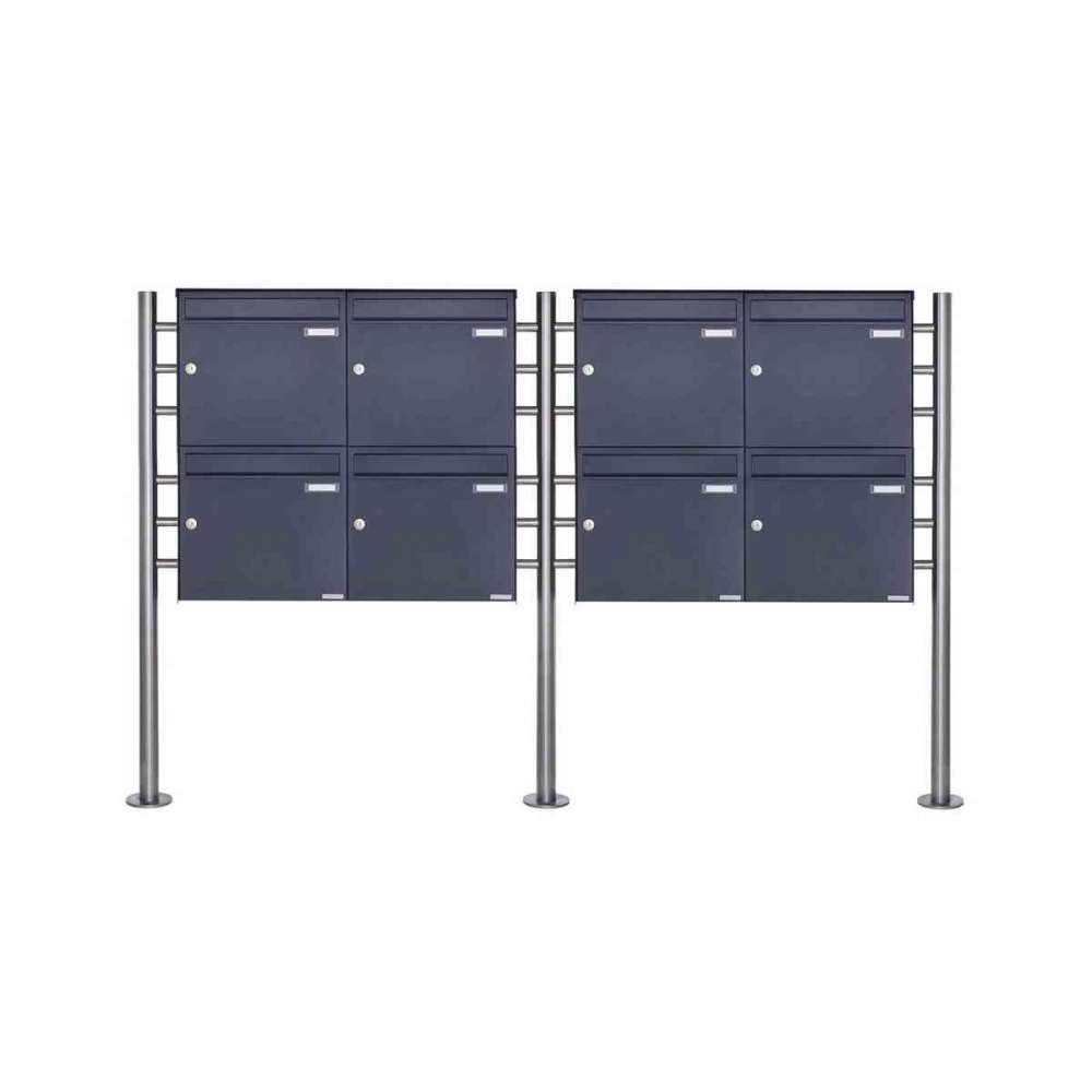 Briefkasten Manufaktur Basic | 8er Edelstahl Standbriefkasten Design BASIC Plus 381X ST-R - RAL nach Wahl 100mm Tiefe