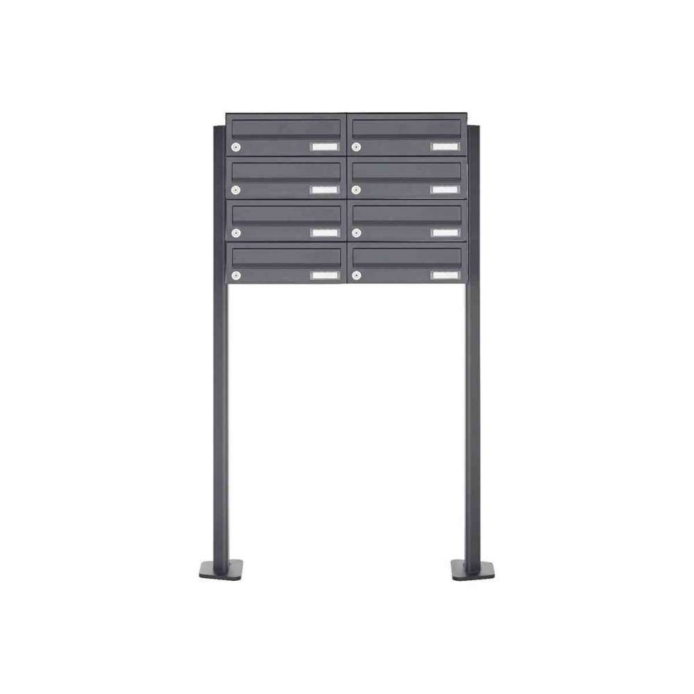 Briefkasten Manufaktur Basic | 8er Edelstahl Briefkastenanlage freistehend Design BASIC Plus 385XP ST-T - RAL nach Wahl