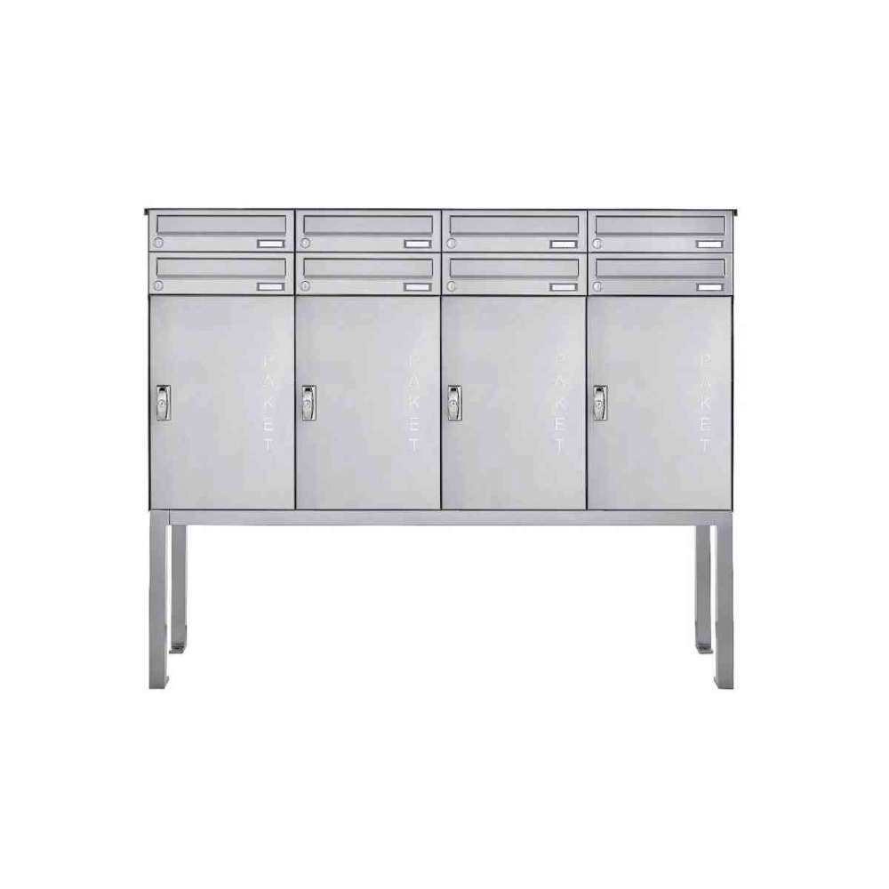 Briefkasten Manufaktur Basic | 8er Edelstahl Briefkastenanlage freistehend BASIC 863B ST-Q - 4x Paketfach - 8x Briefkasten