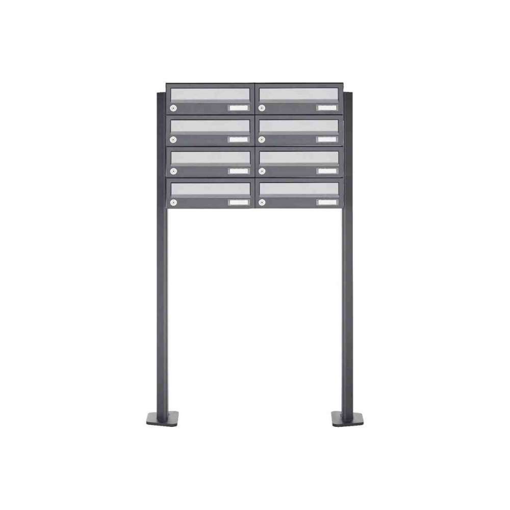 Briefkasten Manufaktur Basic | 8er Briefkastenanlage freistehend Design BASIC 385P ST-T - Edelstahl-RAL 7016 anthrazitgrau