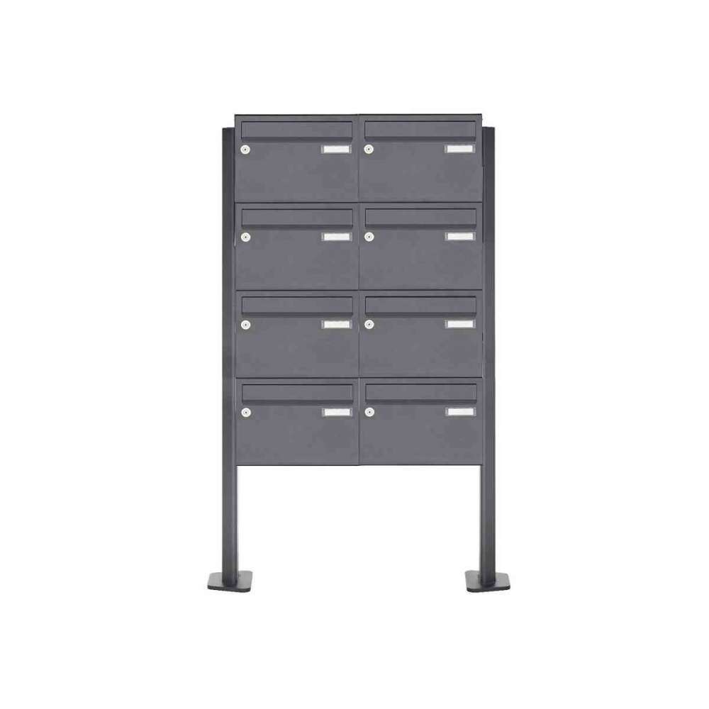 Briefkasten Manufaktur Basic | 8er 4x2 Edelstahl Standbriefkasten Design BASIC Plus 385XP ST-T - RAL nach Wahl