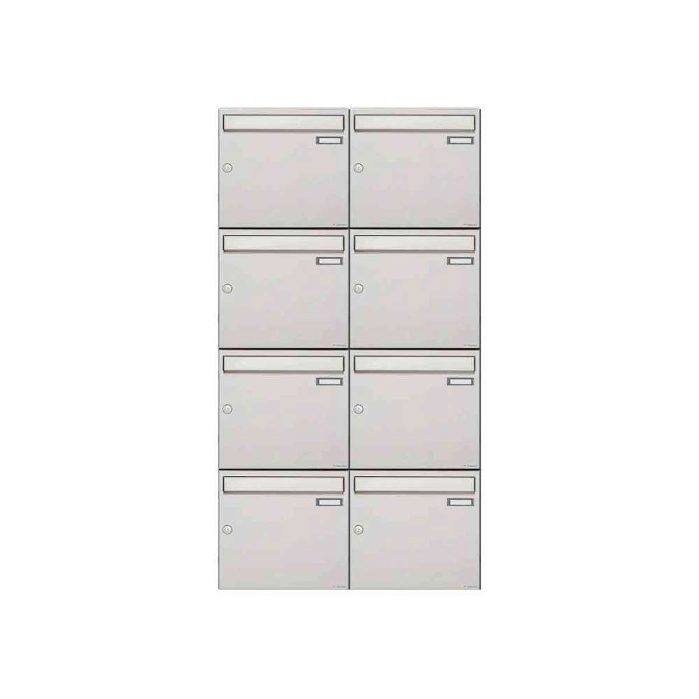 Briefkasten Manufaktur Basic | 8er 4x2 Edelstahl Aufputz Briefkastenanlage Design BASIC 382A-AP Edelstahl V2A, geschliffen 100mm