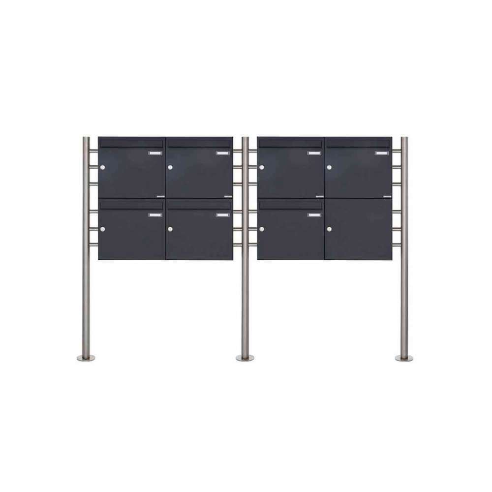Briefkasten Manufaktur Basic | 7er 2x4 Briefkastenanlage freistehend Design BASIC 381 ST-R - RAL 7016 anthrazitgrau 100mm Tiefe