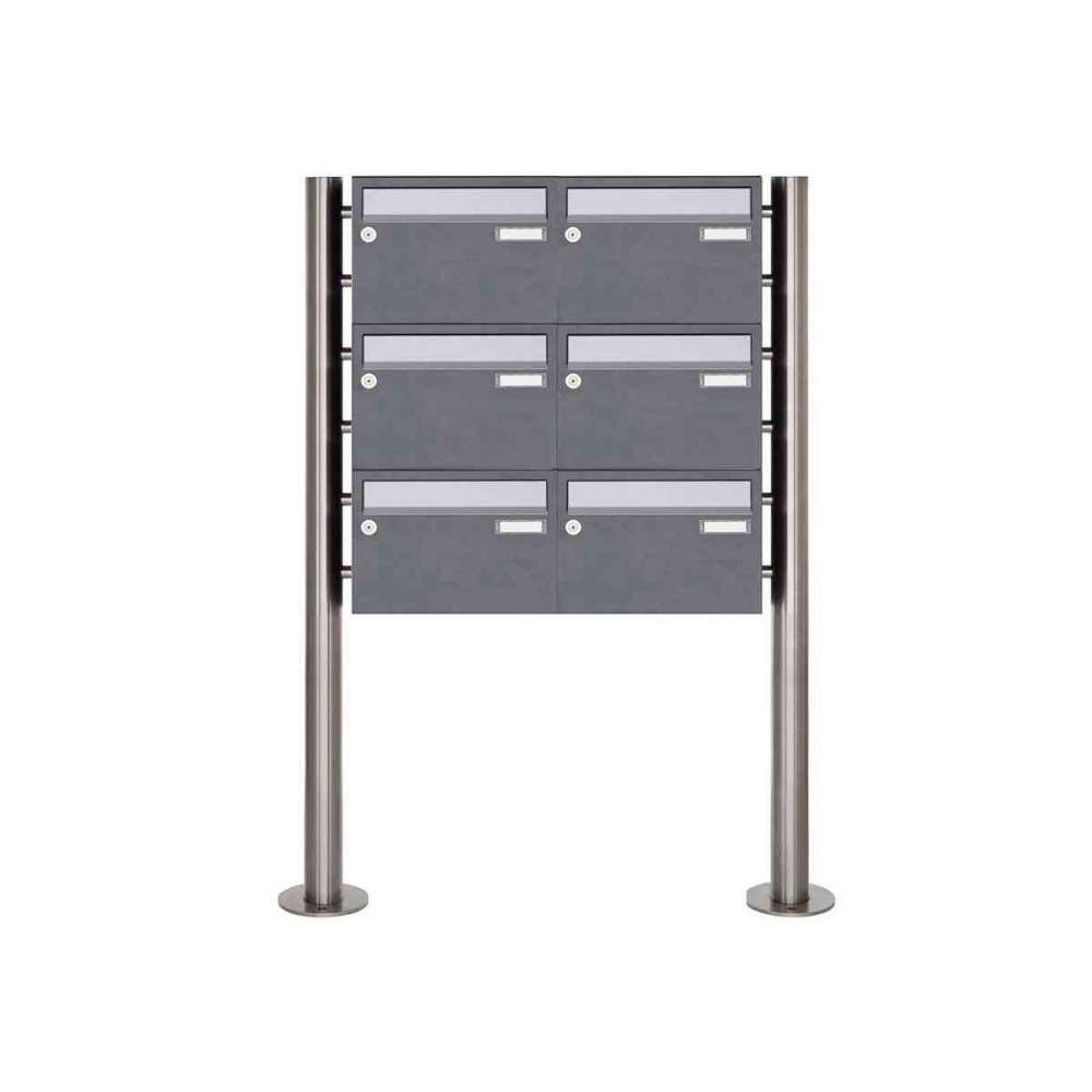 Briefkasten Manufaktur Basic | 6er Edelstahl Standbriefkasten Design BASIC Plus 385 220 X ST R - Edelstahl - RAL nach Wahl