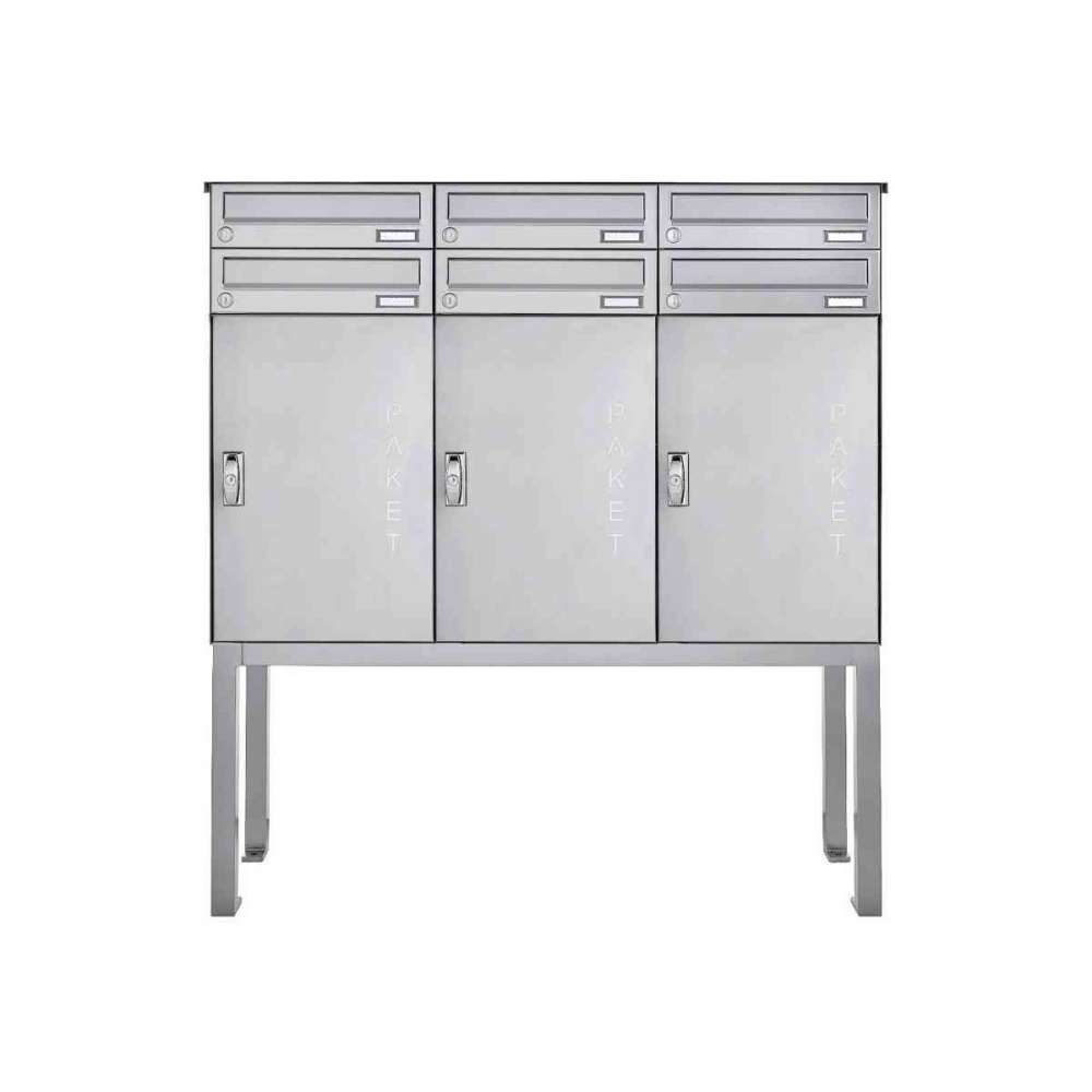 Briefkasten Manufaktur Basic | 6er Edelstahl Briefkastenanlage freistehend BASIC 863B ST-Q - 3x Paketfach - 6x Briefkasten