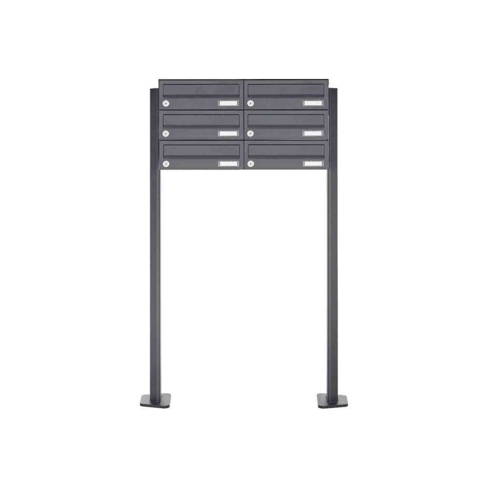 Briefkasten Manufaktur Basic | 6er Briefkastenanlage freistehend Design BASIC 385P ST-T - Waagerecht - RAL 7016 anthrazitgrau