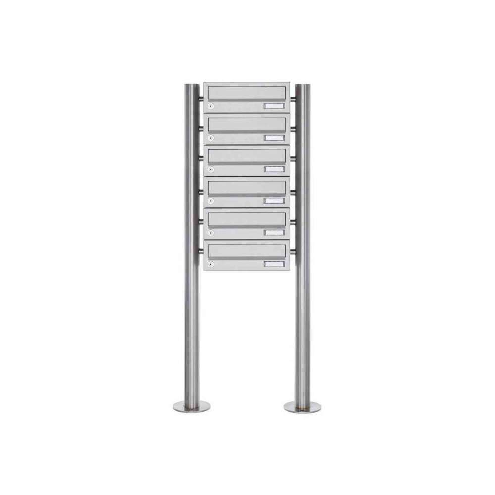 Briefkasten Manufaktur Basic | 6er Briefkastenanlage freistehend Design BASIC 385 ST-R - Edelstahl V2A, geschliffen