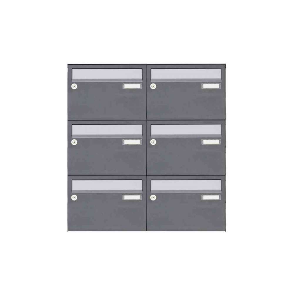 Briefkasten Manufaktur Basic | 6er Aufputz Briefkastenanlage Design BASIC Plus 385 XA 220 - Edelstahl - RAL nach Wahl