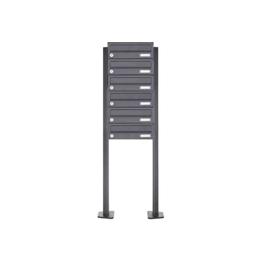 Briefkasten Manufaktur Basic | 6er 6x1 Edelstahl Briefkastenanlage freistehend Design BASIC Plus 385XP ST-T - RAL nach Wahl