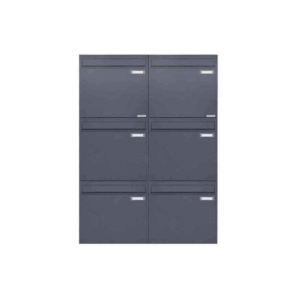 Briefkasten Manufaktur Basic | 6er 3x2 Zaunbriefkasten Design BASIC 382Z - RAL 7016 anthrazitgrau - Entnahme rückseitig