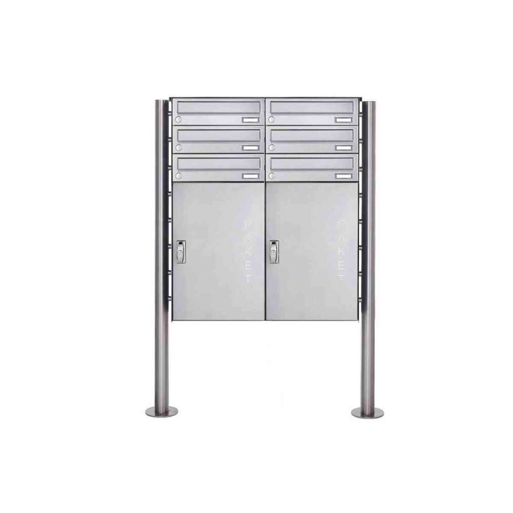 Briefkasten Manufaktur Basic | 6er 3x2 Edelstahl Paketbriefkasten freistehend BASIC 863 ST-R mit Paketfach 550x370