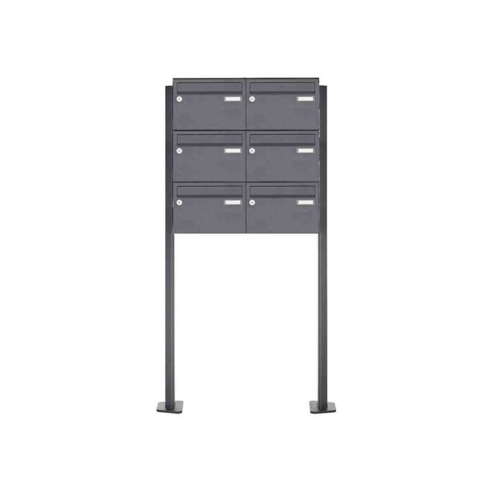 Briefkasten Manufaktur Basic | 6er 3x2 Edelstahl Briefkastenanlage freistehend Design BASIC Plus 385XP ST-T - RAL nach Wahl