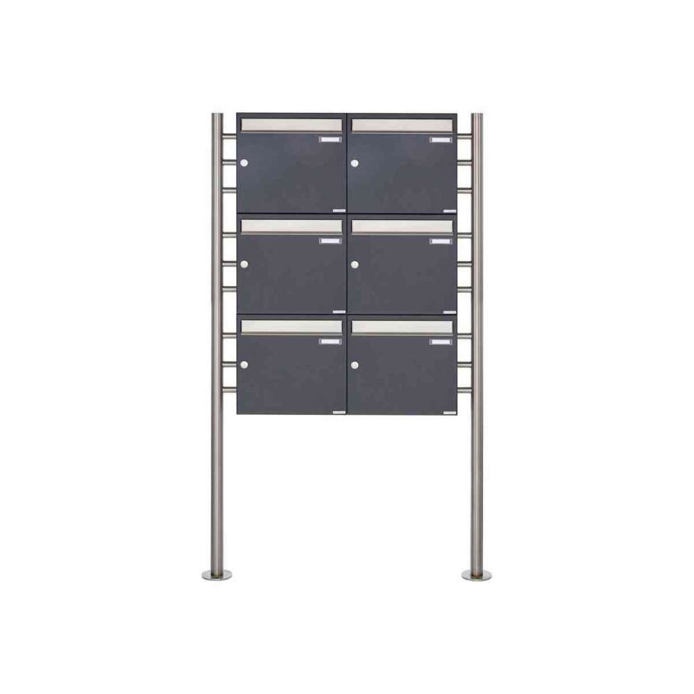 Briefkasten Manufaktur Basic | 6er 3x2 Briefkastenanlage freistehend Design BASIC 381 ST-R - Edelstahl-RAL 7016 anthrazitgrau 10