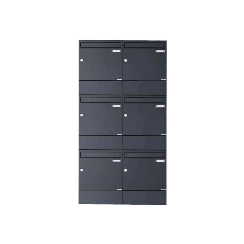 Briefkasten Manufaktur Basic | 6er 3x2 Aufputz Briefkasten BASIC 382A AP mit Zeitungsfach - RAL 7016 anthrazitgrau