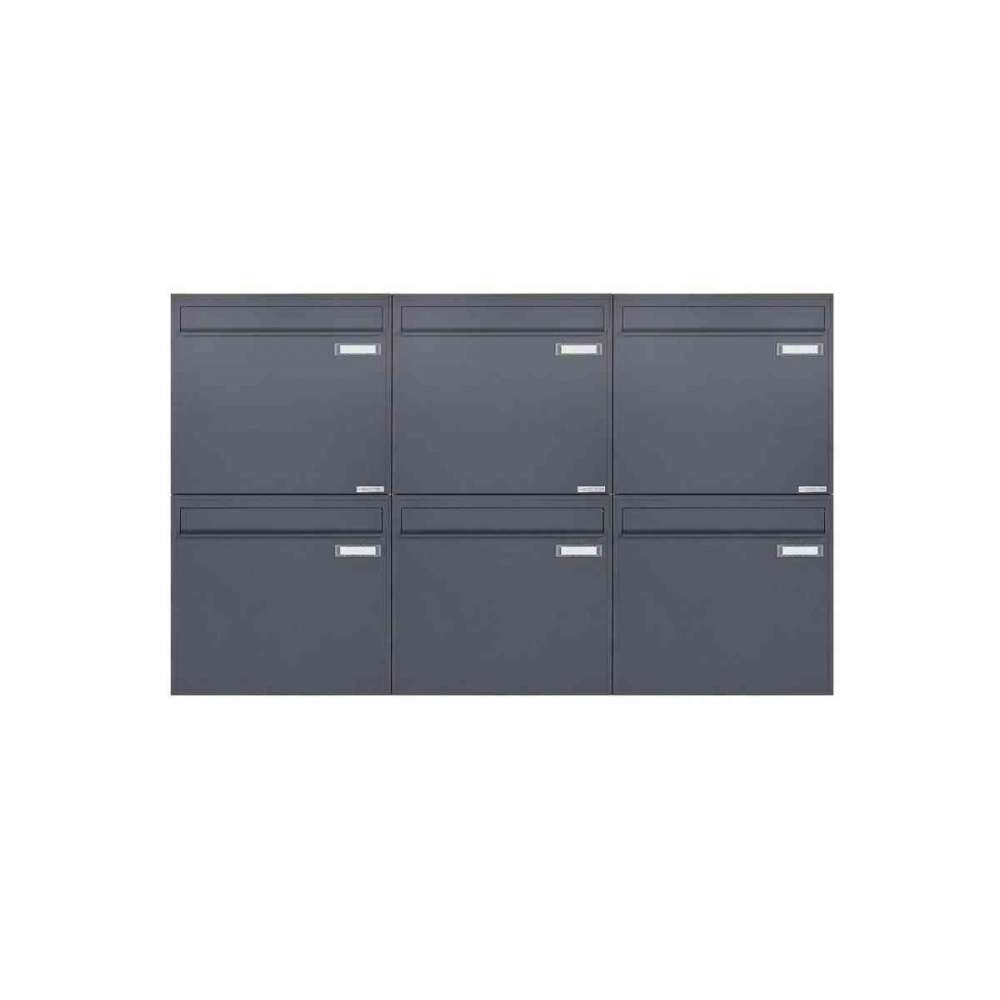 Briefkasten Manufaktur Basic | 6er 2x3 Zaunbriefkasten Design BASIC 382Z - RAL 7016 anthrazitgrau - Entnahme rückseitig